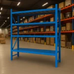 Schwerlastregal aus Stahl – 1500 x 500 x 2000 mm – 4 Ebenen – 400 kg Tragkraft – verzinkt & blau pulverbeschichtet