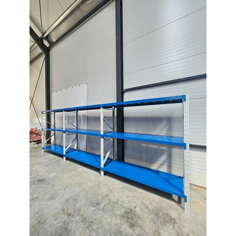 Schwerlastregalsystem 3900×600×2000 mm – 8 Ebenen – Schwerlastregal 2400 kg – verzinkt, stabil & werkzeuglos montierbar (Blau)