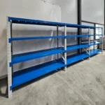 Schwerlastregal aus Stahl – 1500 x 500 x 2000 mm – 4 Ebenen – 400 kg Tragkraft – verzinkt & blau pulverbeschichtet