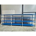 Das Regal besteht aus einer massiven Stahlkonstruktion mit 4 Ebenen, verteilt über eine Gesamtlänge von 5800 mm.