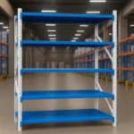 Schwerlastregal aus Stahl – 1500 x 500 x 2000 mm – 4 Ebenen – 400 kg Tragkraft – verzinkt & blau pulverbeschichtet