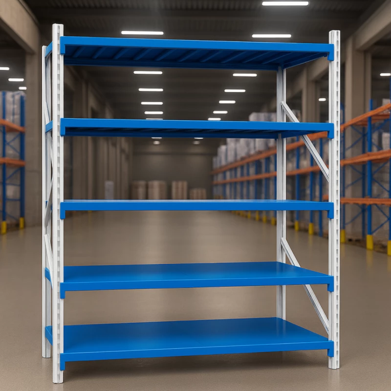 Dieses hochwertige Schwerlastregal aus Metall ist für den intensiven Einsatz in Lagern, Werkstätten, Garagen sowie Industrie- und Gewerbebereichen konzipiert.