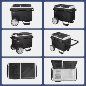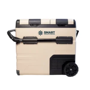 Smart Cooler 55L – Dual-Zone Kompressor-Kühlschrank mit Bluetooth, LCD-Display, 12V/24V, −20°C, Räder & Teleskopgriff, leise & energieeffizient