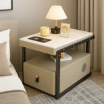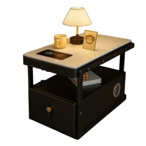 Dieser Smart Nachttisch mit Wireless Charging und Bluetooth-Lautsprecher kombiniert modernes Design mit intelligenter Technologie und macht Ihr Schlafzimmer funktionaler und stilvoller zugleich.