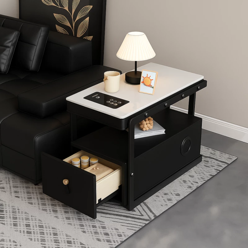Dieser Smart Nachttisch mit Wireless Charging und Bluetooth-Lautsprecher vereint modernes Design mit intelligenter Technologie und bietet maximalen Komfort direkt neben Ihrem Bett.