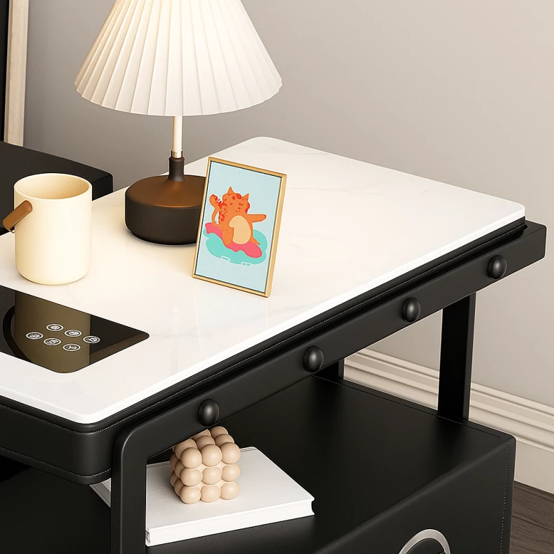 Gefertigt aus hochwertigen Materialien wie Sicherheitsglas, gesintertem Stein, PU-Leder, Sperrholz und Stahl, überzeugt dieser Nachttisch durch Stabilität, Langlebigkeit und eine edle, moderne Optik. Die widerstandsfähige Oberfläche ist kratzfest, pflegeleicht und ideal für den täglichen Gebrauch.