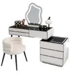 Dieser Smart Schminktisch mit LED-Spiegel und Qi-Ladefunktion vereint modernes Design mit intelligenter Technik und schafft einen stilvollen Beauty-Bereich für den täglichen Gebrauch.