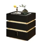Diese smarte Nachtisch mit Wireless Charging und Zahlenschloss verbindet modernes Design mit intelligenter Funktionalität und bietet höchsten Komfort für das Schlafzimmer. Die elegante schwarze Optik mit goldfarbenen Akzenten verleiht dem Möbelstück eine luxuriöse und zeitlose Ausstrahlung.