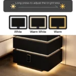 Ein besonderes Sicherheitsmerkmal ist das Zahlenschloss, das Ihre persönlichen Gegenstände zuverlässig schützt. Zusätzlich verfügt die Nachtisch über eine automatische Nachtlicht-Funktion mit Bewegungssensor, die sich bei Dunkelheit selbstständig aktiviert.