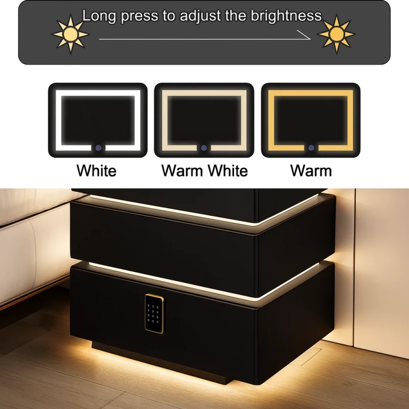 Smarte Nachtisch Schwarz mit LED, Wireless Charging 15W & Zahlenschloss