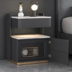 Ein besonderes Highlight ist der integrierte Safe, der sicheren Stauraum für Wertsachen, Dokumente oder persönliche Gegenstände bietet. Der zusätzliche offene Stauraum eignet sich ideal für Bücher, Accessoires oder Alltagsgegenstände.