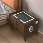Der integrierte Bluetooth-Lautsprecher (10 W) liefert klaren, ausgewogenen Klang direkt vom Nachttisch. Für zusätzliche Sicherheit sorgt das Fingerabdruck-Sicherheitssystem, mit dem persönliche Gegenstände zuverlässig geschützt werden. Zwei geräumige Schubladen bieten ausreichend Stauraum für Ordnung und Komfort im Alltag.