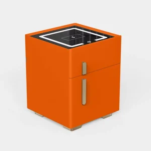 Smarter Nachttisch Orange mit Wireless Charging 15W, Bluetooth-Lautsprecher 10W, Safe, LED-Beleuchtung, USB & Typ-C – Modernes Glas- & Holzdesign