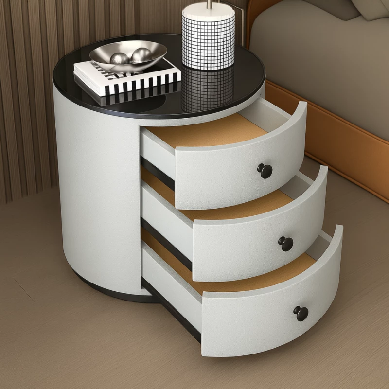 Dieser smarte Nachttisch in Light Gray mit kabelloser Qi-Ladefunktion (Qi Wireless Charging) vereint modernes Design mit intelligenter Funktionalität. Die elegante, runde Form und die hochwertige Verarbeitung machen ihn zu einem stilvollen Blickfang in jedem modernen Schlafzimmer.