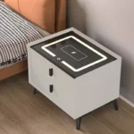 Dieser smarte Nachttisch in Weiß mit kabellosem Laden kombiniert zeitloses Design mit moderner Funktionalität und fügt sich harmonisch in jedes moderne Schlafzimmer ein.