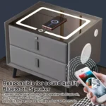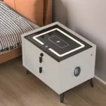 Für zusätzliche Sicherheit ist der Nachttisch mit einem Fingerabdruck-Schloss ausgestattet, das persönliche Gegenstände zuverlässig schützt. Zwei geräumige Schubladen bieten ausreichend Stauraum für Alltagsgegenstände, Accessoires oder elektronische Geräte.