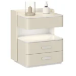 Dieser smarte Nachttisch in Weiß mit kabelloser Qi-Ladefunktion (Qi Wireless Charging) vereint modernes Design, intelligente Technik und erhöhte Sicherheit in einem eleganten Möbelstück. Er wurde speziell für moderne Schlafzimmer entwickelt, in denen Komfort, Funktionalität und Stil im Vordergrund stehen.