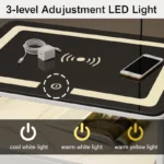 Die LED-Beleuchtung mit drei Lichtfarben (warm, neutral, kalt) sorgt für eine individuell anpassbare Lichtstimmung – perfekt zum Lesen, Entspannen oder als dezente Nachtbeleuchtung.