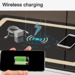 Die integrierte Ladefläche ermöglicht kabelloses Laden (Wireless Charging) für kompatible Smartphones mit bis zu 15 W. Legen Sie Ihr Smartphone einfach auf die Glasoberfläche und laden Sie es bequem ohne Kabel auf.