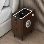 Smarter Nachttisch Braun mit kabelloser Qi-Ladefunktion (Qi Wireless Charging), LED-Beleuchtung & Passwort-Schublade