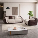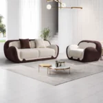 Sofa Set 2-Sitzer & Sessel – W3350 Schaumstoff, Weiß & Braun, Modern & Komfortabel