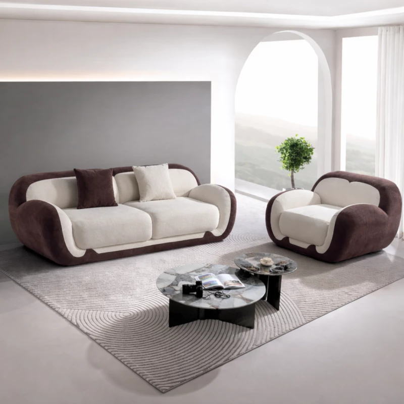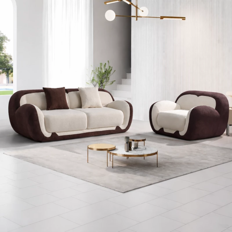 Sofa Set 2-Sitzer & Sessel – W3350 Schaumstoff, Weiß & Braun, Modern & Komfortabel